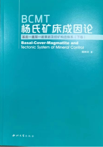 BCMT楊氏礦床成因論(下卷)2024年1月已由西北大學出版社出版,61萬字,定價80元。論證個舊錫礦、薩爾托海和羅布莎鉻鐵礦、石碌鐵礦受控于控礦張性入字型構造。個舊錫礦錫儲量有在1984年基礎上翻番的找礦遠景自2010年即向有關部門、領導反映。指出援用久遠的五子山復背斜不存在,應改為老卡松背斜并陳述道理。論證個舊錫礦田分別受個卡入字型構造和個楊入字型構造兩個控礦張性入字型構造控制,指出等軸狀坡洪積砂錫礦體是冰川融水向喀斯特落水洞集中排放的結果。論證個舊錫礦成礦時代為白堊紀-老第三紀亦即個舊斷裂帶斷陷盆地中沉積的地層時代;論證碳酸鹽巖帽與煤以及磷塊巖都是大冰期的產物,都是冰磧層之帽。前者為生帽,后者為死帽(均為濕帽一一水體沉積),另有膏鹽帽干帽(大氣圈干涸沉積)。煤層與磷塊巖不共生定律,磷塊巖必定隨地質時期減少的道理等;指出中日兩位泥炭權威將泥炭與沼澤泥炭混為一談概念不清及由此產生的嚴重后果。